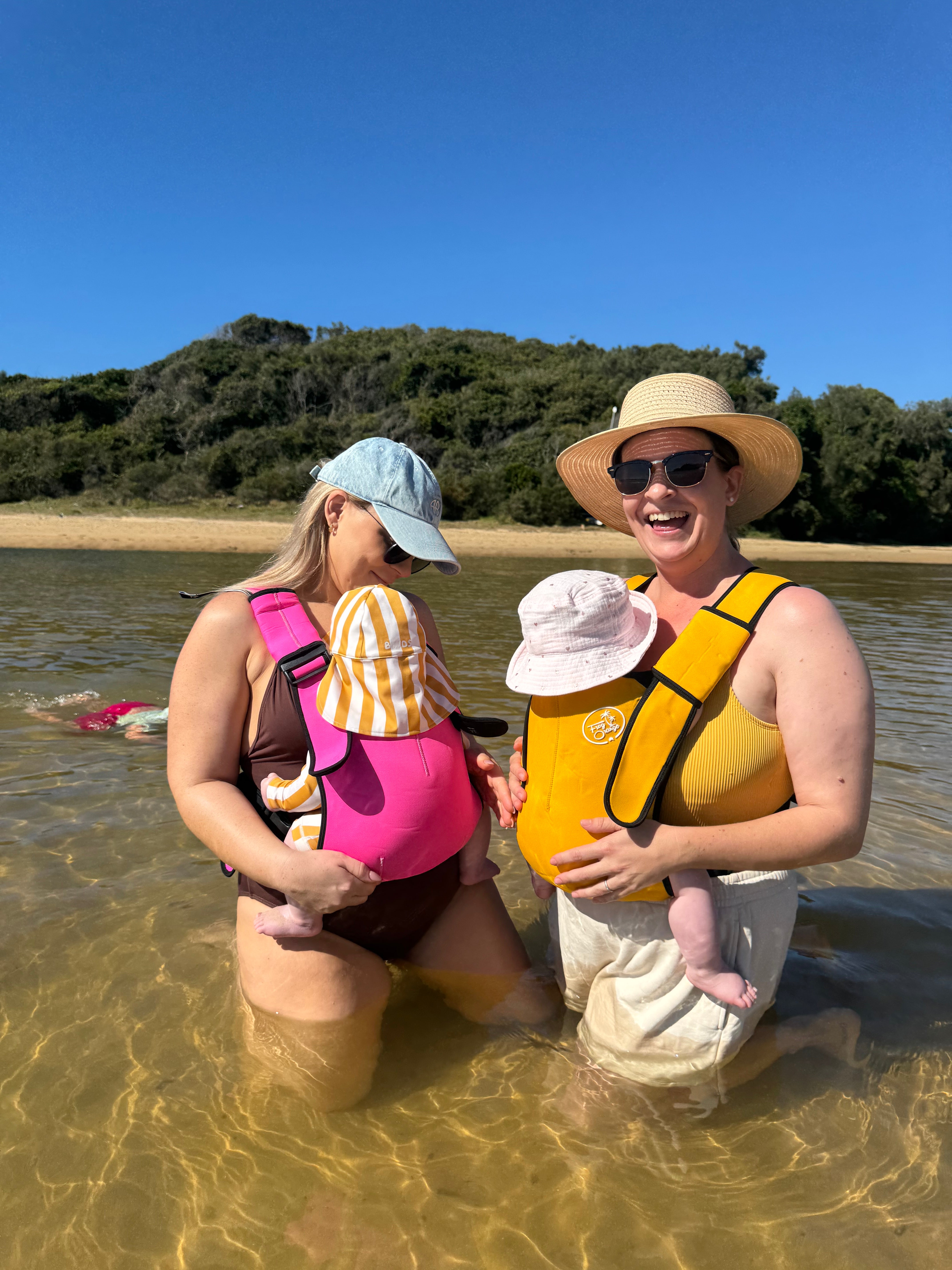 My mum bought me this carrier so I could enjoy the water with both my girls. One in the carrier and holding the other! Whoever thought up this product deserves a medal! So so clever, so practical, and has made me a very very happy mumma!!