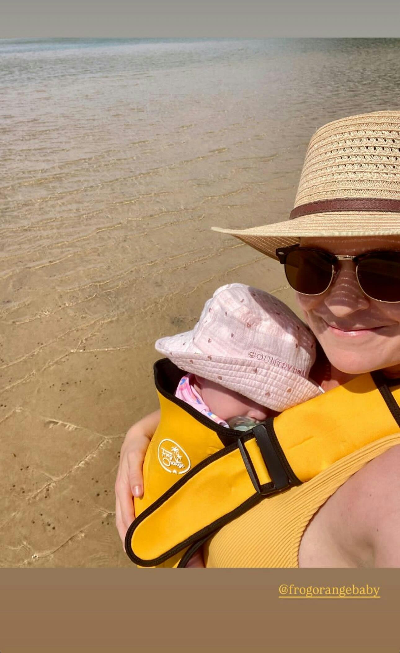 - Ensure baby is positioned correctly in carrier before entering the water.