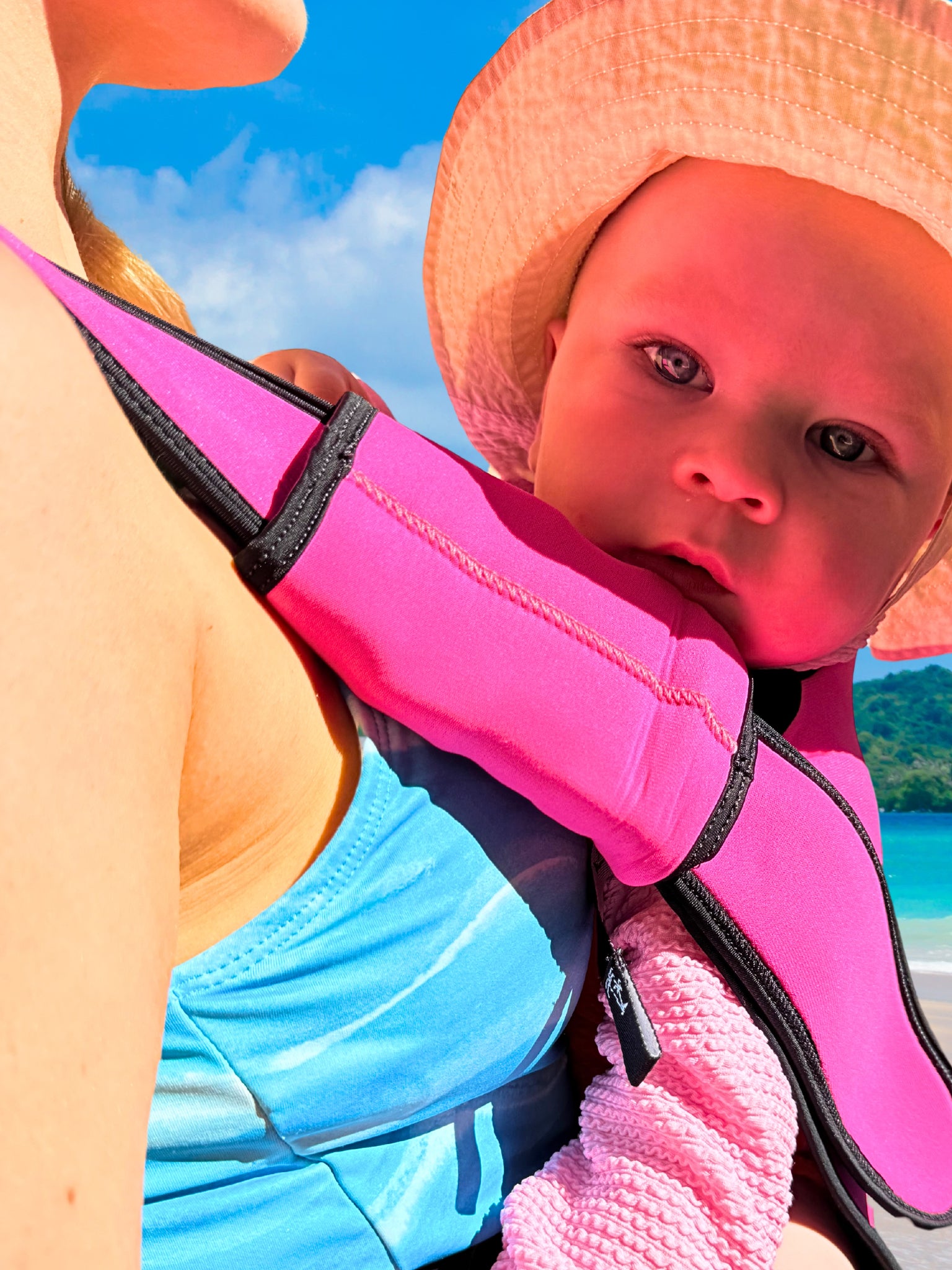 Our baby carriers allow you to babywear everywhere you usually would, but with the added benefit of being designed for use in the water, sand, salt, dirt & snow! Keep baby secure & warm in the wind & cold, or cool and your hands free at the beach, pool, waterparks and more!